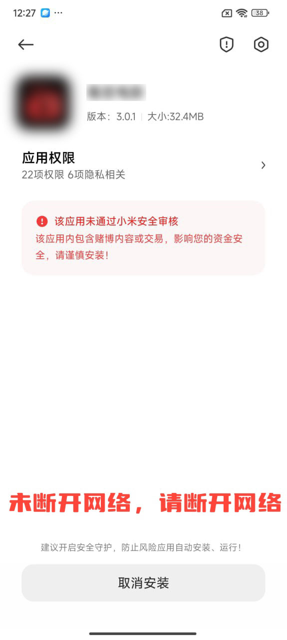 3.取消系统默认风险提示后,再次点击apk安装即可
